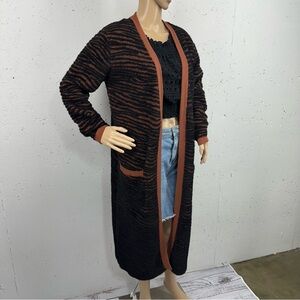 J.O.A Just One Answer Small Black & Brown Zebra Print Long Fuzzy Cardigan Duster