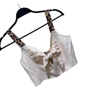 J.O.A. Just One Answer Womens Size M Ivory Animal Print Straps Boho Crop Top NWT
