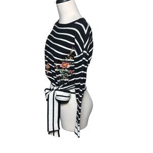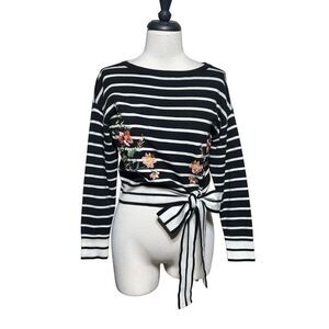 J.O.A Just One Answer Long Sleeve Floral Embroidered Cropped Sweater Striped XS