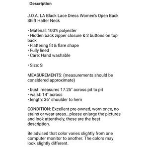 J.O.A. LA Black Lace Dress Women's Size S Open Back Shift Halter Neck