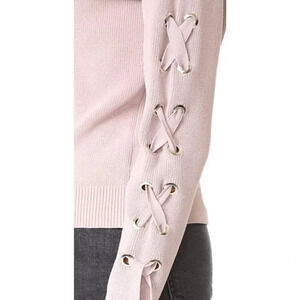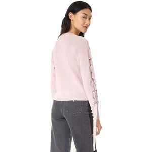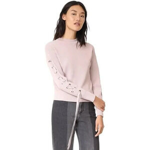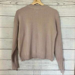 JOA Light Dusty Pink Ribbed Tie Sleeve Crewneck Sweater L