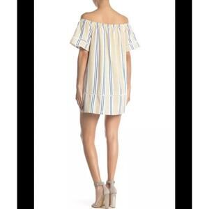 J.O.A. Los Angeles Blue & Yellow Striped Off The Shoulder Shift Dress XS