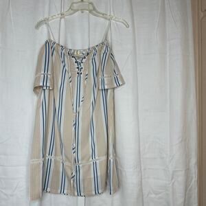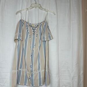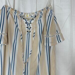 Striped off the shoulder dress in a woven fabric, with a lace up neckline. Excellent condition