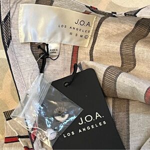 JOA Los Angeles Womens Crop Top Tan Stripped Long Sleeve Open Back Ties Large