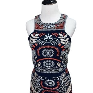 J.O.A. Los Angeles Women's Mini Dress in Size Small. Fitted Sheath Dress, Sleeveless, with heavy embroidery all over. Lined. The fabric is a Polyester Spandex Blend. Good Condition.