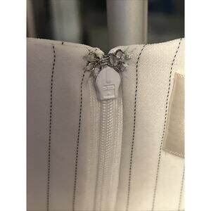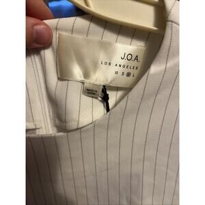 This J.O.A. blouse is a versatile addition to your wardrobe. With its striped pattern and long sleeves, it's perfect for a business setting or casual outings. The round neckline and hook & eye closure add a touch of elegance, while the casual sleeves and bow accents give it a playful edge.