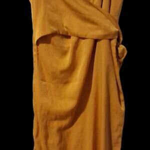 ๐ผ J.O.A. Mustard Yellow Drape Wrap Midi Dress โ Size S ๐ผ