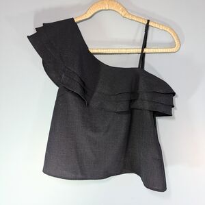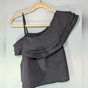 Fabulous navy woven ruffled one shoulder plus strap top by J.O.A.
