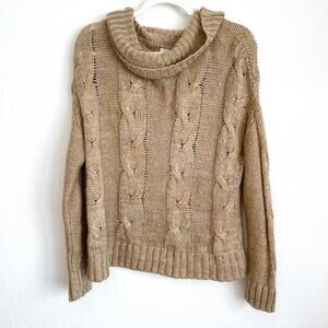 JOA Just One Answer Neutral Tan Cowl Neck Sweater