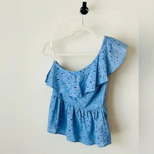 J.O.A. One-Shoulder Blue Eyelet Ruffle Blouse - Size S - NWT