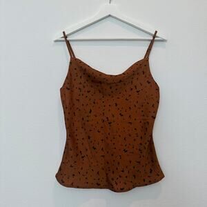 JOA Revolve Brown Dot leopard print satin cowl neck cami tank top blouse small