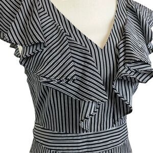 J.O.A. Ruffle Midi Dress Just One Answer Black and White Striped Lined Tie Waist