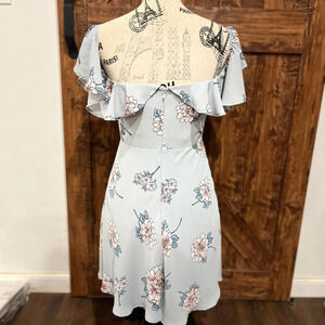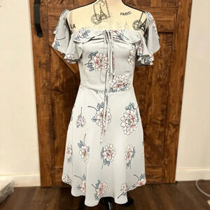 J.O.A. Slip above the knee mini floral off the shoulder neck tie dress size small
