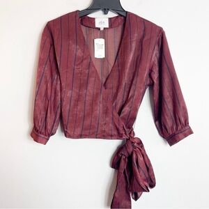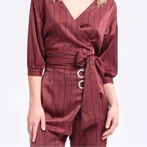 J.O.A. Striped Surplice S Wrap Top & Pants Wine Color NWT