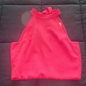 J.O.A. Sleeveless top. Ties around the neck and has a button in the back to close it. Opening in the middle of the back. In great condition