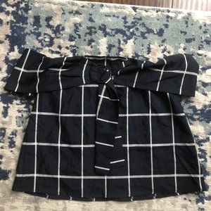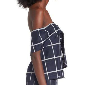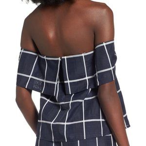 J.O.A Windowpane Plaid Off The Shoulder Top