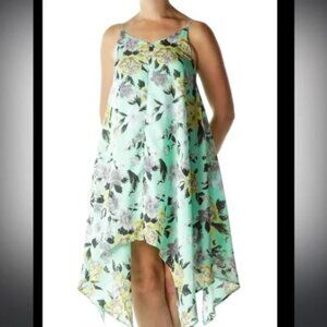 JOA Women's Blue Floral Tent Sleeveless Asymmetrical Knee Length Dress. Medium