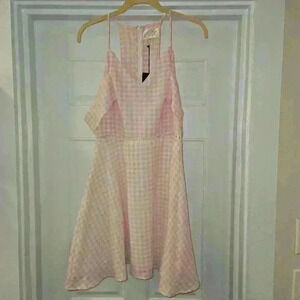 J.O.A. Womens Pink Gingham Off The Shoulder Halter Dress Size Medium NWT