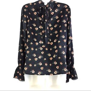 J.O.A. black Floral High Neck Long Bell Sleeve Blouse