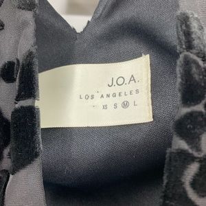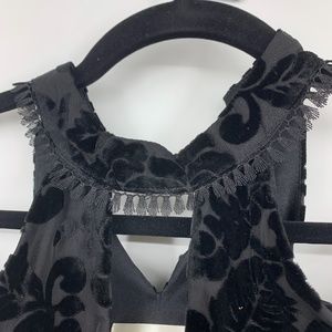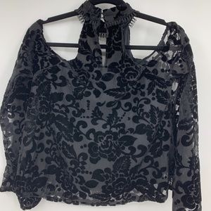 JOA blouse medium velvet high neck fringe cold shoulder keyhole back black