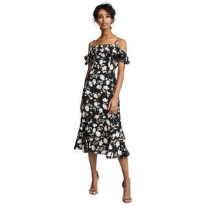 J.O.A. Eugenia Black Floral Print Off-the-Shoulder Midi Dress