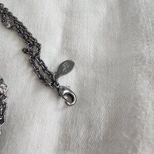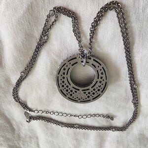 METAL CHAIN HAS CRYSTALS THROUGHOUT. INCLUDES BLACK CORD TO HANG AS WELL.