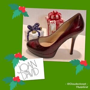 JOAN & DAVID BURGUNDY PATENT Platform Heel 7.5M