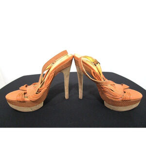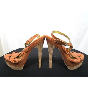 JOAN & DAVID Brown Snake Print Leather Ankle Strap Platform Stiletto Heels 7.5 M