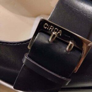Brand new never worn, real leather with 2 1/2 inch heal, with small front buckle with name on it CIRCA. Slip resistant and very comfortable, soles are made of rubber so they move with your foot. Size 8 1/2, color midnite blue looks almost black. Can be worn for dress or jeans. Comes with dust bag. I bought them at Nordstroms.