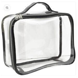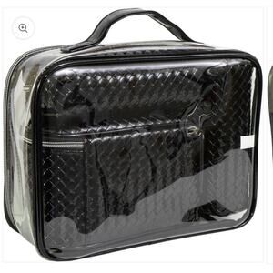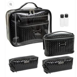 This JOAN & DAVID cosmetic bag set is the perfect addition to your travel accessories! The set includes four clear bags in varying sizes, all made with a stylish patent woven design in classic black. Keep your beauty essentials organized and easily accessible with this chic and functional set. It is brand new.