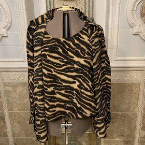 JOAN LESLIE. Sz 16W. Two Piece Set. Long Sleeve Button Up.Blouse / Tank. B65