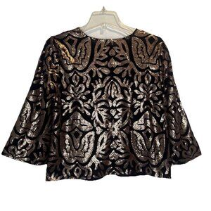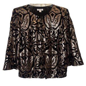 JOAN RIVERS Black & Gold Floral Metallic Sequins 3/4 Sleeve Blazer Sz M