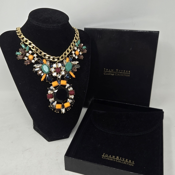 JOAN RIVERS Collection Statement Necklace With Multi Colored Rhinestones Y2K