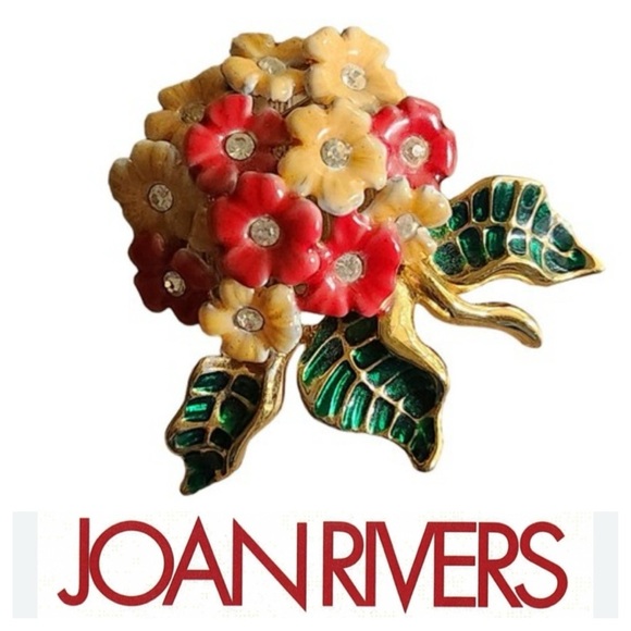 JOAN RIVERS Enamel Floral Rhinestone Brooch