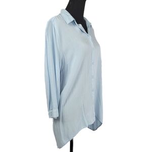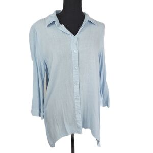 JOAN VASS Asymmetrical Button Down Tunic Blouse Size Medium 100% Rayon