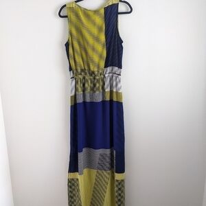JOAN Vaas Geometric Sleeveless Maxi Dress Navy Yellow M