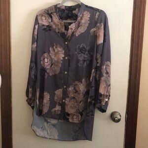 Joan Vass Floral Printed Tunic Grey/Taupe XS