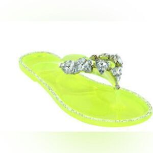 JOANIE-214 Fashion Rhinestone Embellished Jelly Sandals Neon Yellow Size 5 New