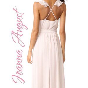 JOANNA AUGUST Lacey Blush Pink Formal V-Neck Wedding Party Ruffle Wrap Dress, Size XS