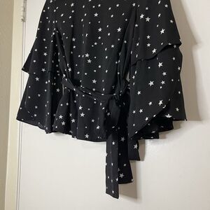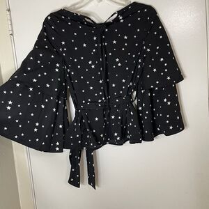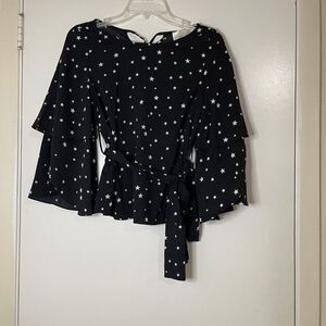 J.O.A Tie Waist tiered Star Print black blouse top size XS