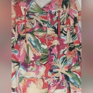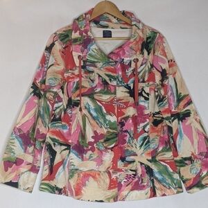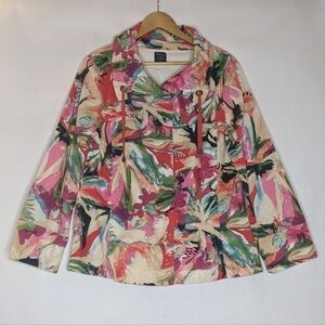JOCKEY JACKET MEDIUM PINK MULTI COLOR ART MODERN PRINT LIGHT COTTON SPRING
