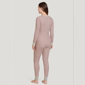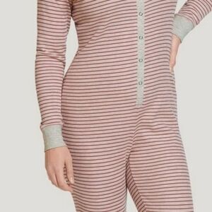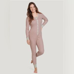 JOCKEY Womens XL Waffle Union Suit Oatmeal Rose Clay Stripe 1pc Pajama