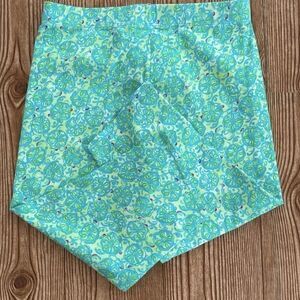 Jockey Bodywear elastic waistband crop leggings, size L. Cotton spandex blend. Fit more like a medium. Turquoise and green design. Approximate measurements are waist flat 13”, rise 10”, inseam approximately 16”.