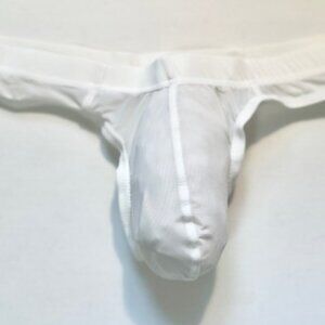 JOCKMAIL Waist 28-31"s Nylon Blend Semi Sheer T-Back Thong - White - PouchJOC