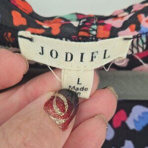 JODIFL Abstract Print Short Sleeve Flowy V Neck Blouse size L
