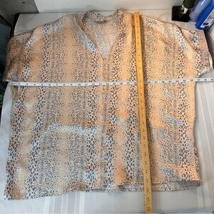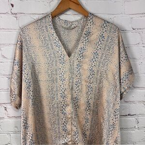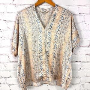 JODIFL Beige Blue Patterned Blouse size small boutique top shirt Resortwear