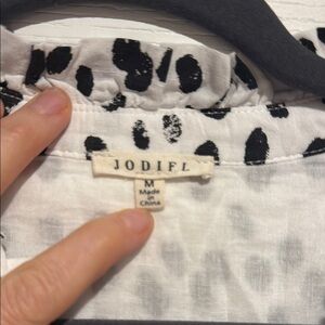 JODIFL Black and White Polka Dot Mini Dress with Pink Floral Sleeves
