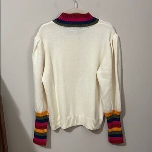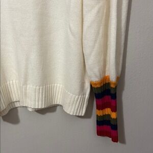 JODIFL Cream and Pink Mock Neck Sweater with Textured Knit Rainbow