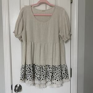 Short Sleeve Cream + Black Dalmatian Print Ruffle Tiered Blouse