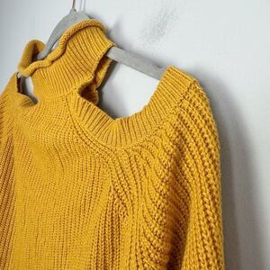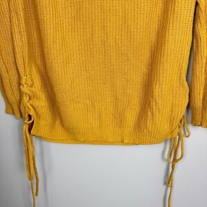 JODIFL | Mustard Yellow Cold Shoulder Turtleneck Sweater Lace Up Women’s Size L
